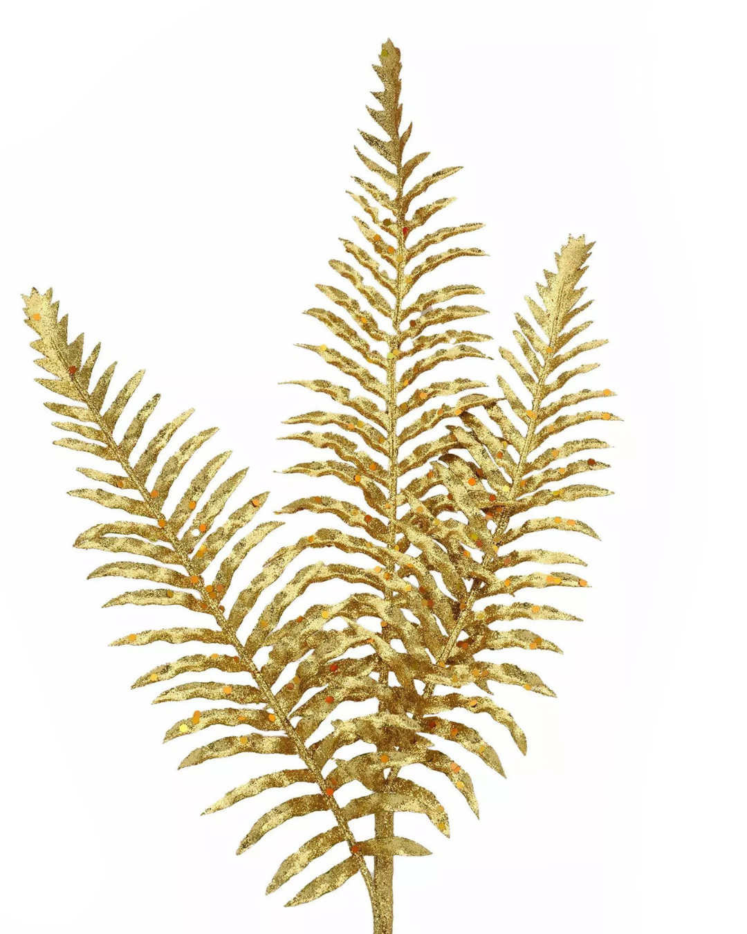 Sæt med 6 Folium Cycas blade med guldglitter – perfekt til indendørs juledekorationer, kranse og kreative arrangementer. Skaber et elegant og festligt udtryk.