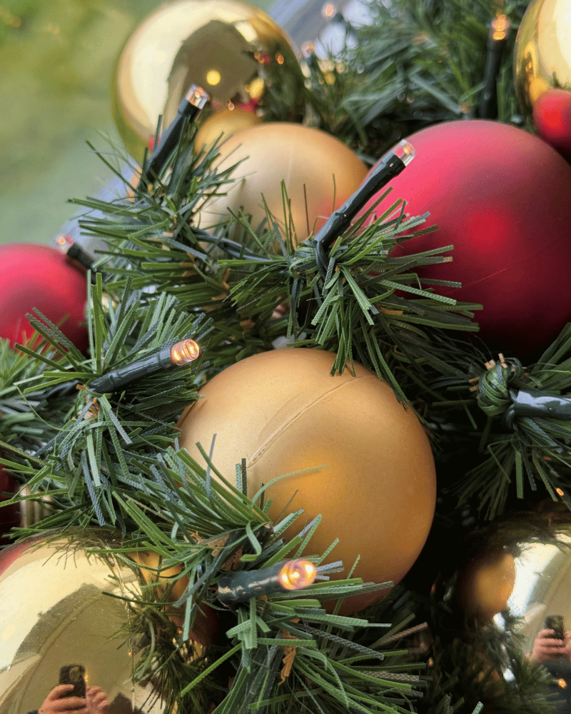 Materiale: Kunstigt gran dekoreret med julekugler med 69 stk. Ø60 samt batterilyskæde.
