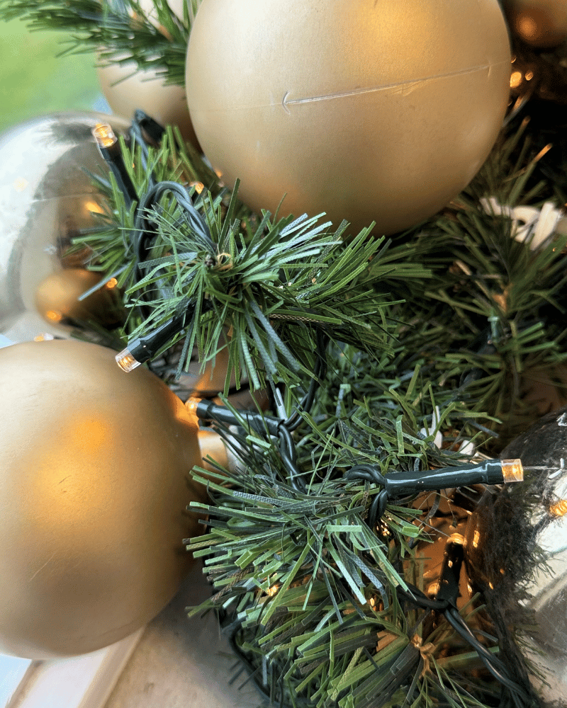 Demo granguirlande med 30 assorterede kugler (sølv, champagne) og batterilyskæde.