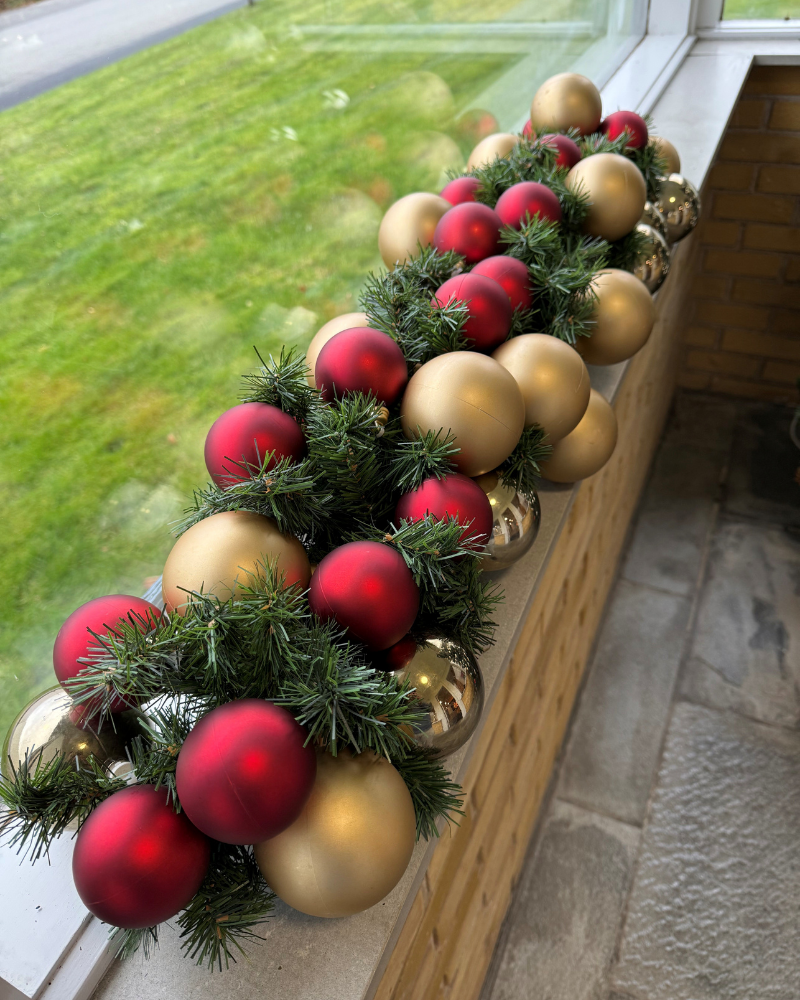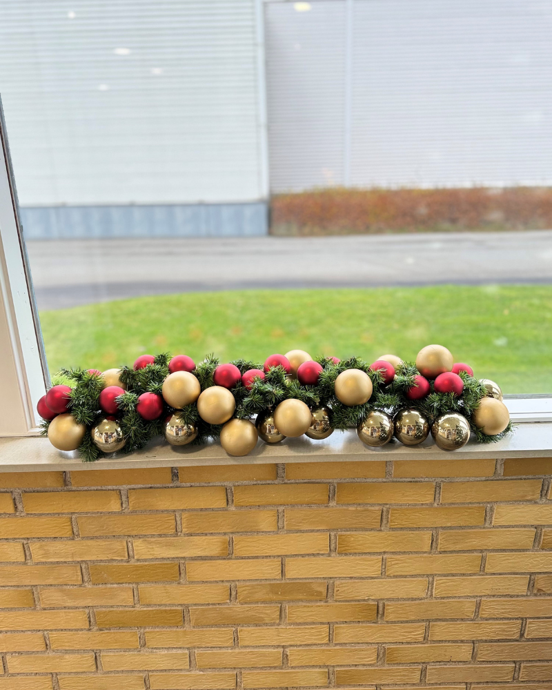 Demo granguirlande med 45 assorterede kugler (rød, champagne).