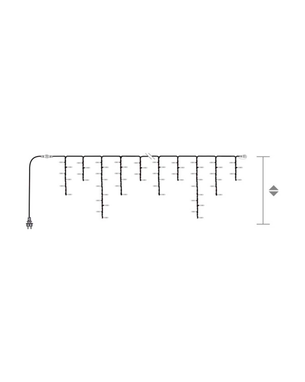 Professionel istap-lyskæde med 576 patenterede LED-pærer: 432 varm hvid + 144 pure white slowflash. 16 strenge (8×2 layout) med sølvfarvet PVC-kabel. Skaber en elegant og dynamisk stemning. Kun til indendørs brug.