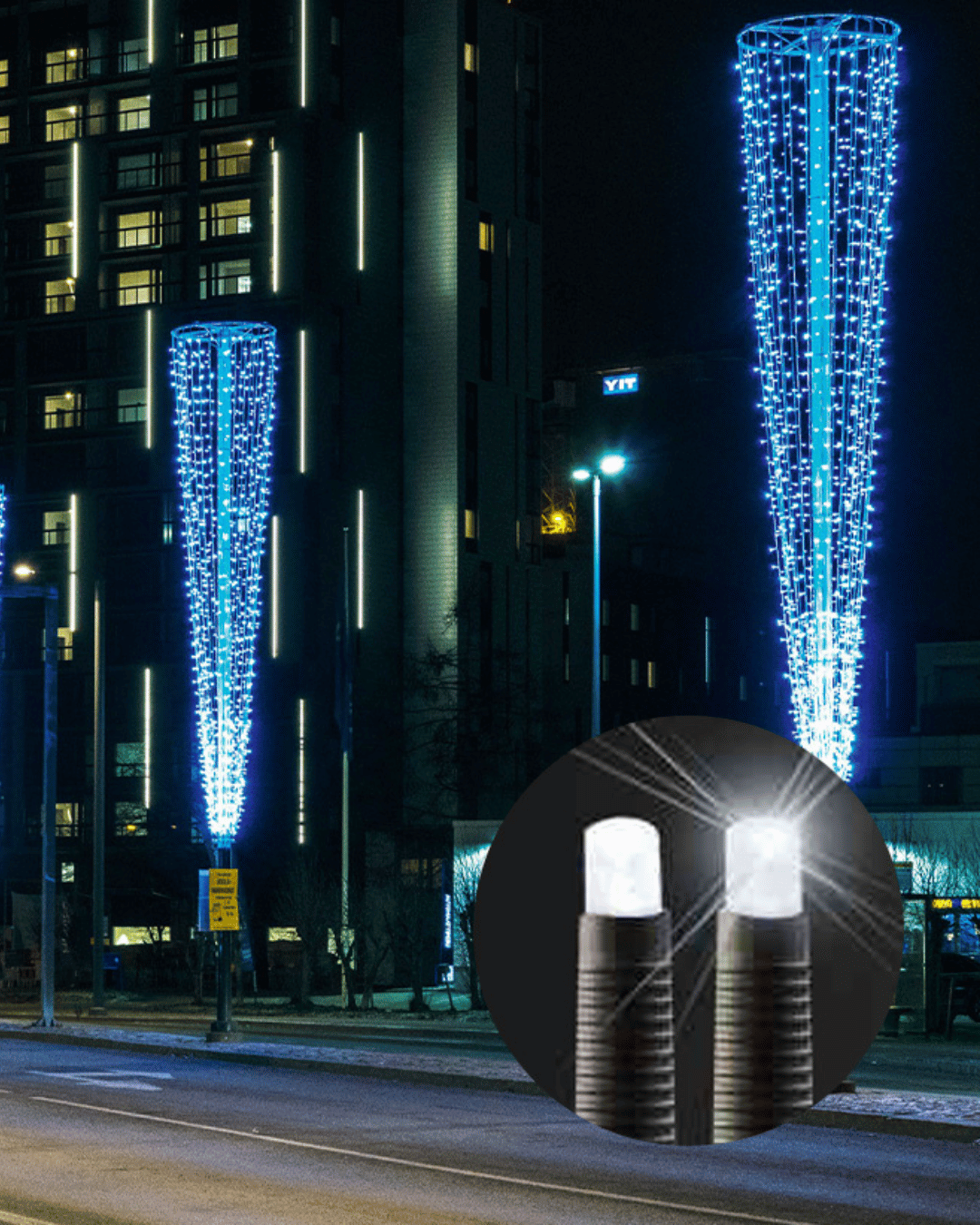 Skab et eksklusivt og stemningsfuldt lysmiljø med Joylight LED+ lysgardinet på 5 meter høj og 2 meter lang. En løsning, der fungerer lige godt i private haver og terrasser som i større professionelle opsætninger på facader, i byrum, gågader og shoppingcentre, hvor både synlighed og æstetik er i fokus.