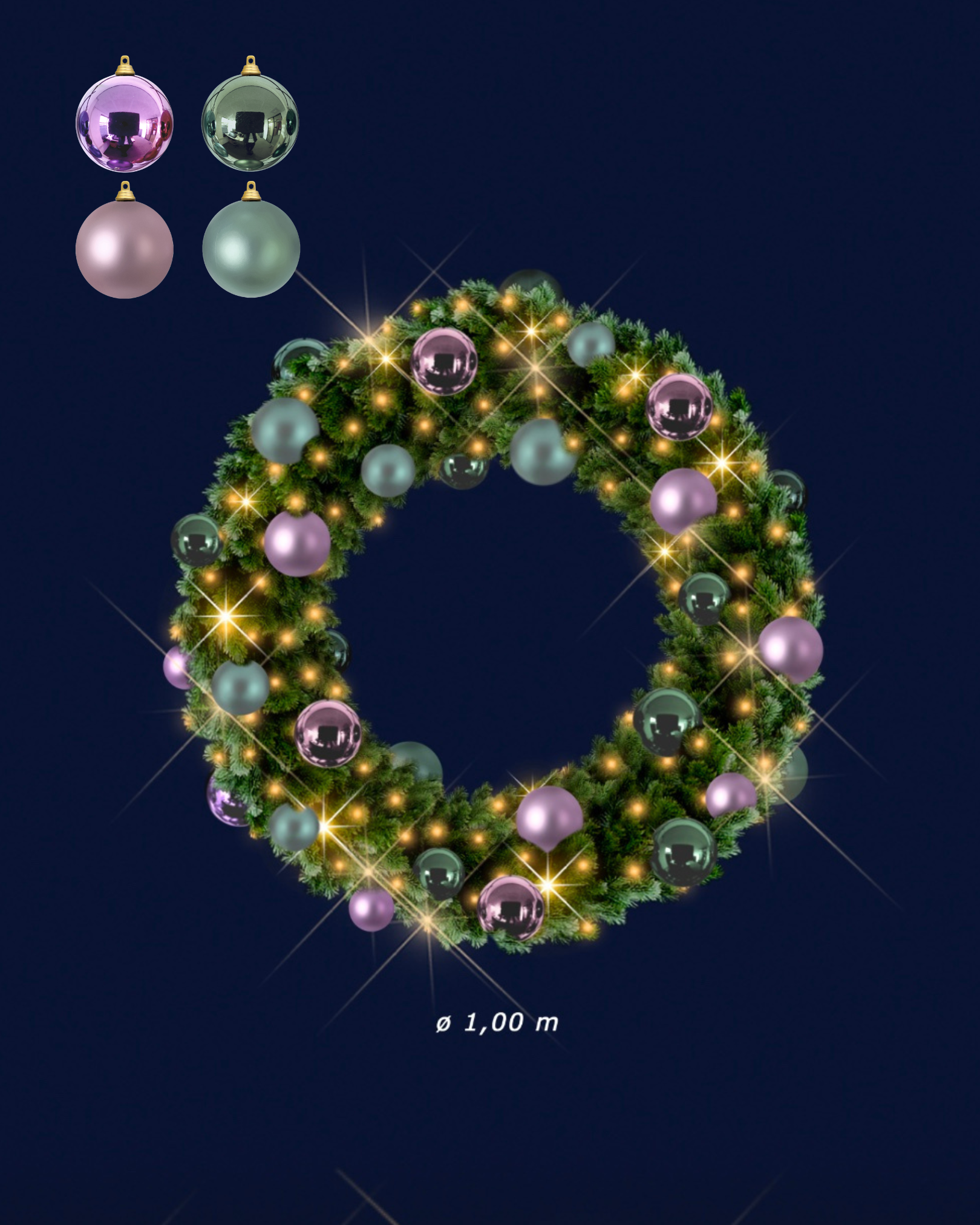 Dette dekorationskit er udviklet til virksomheder og kommuner, der ønsker en effektiv og æstetisk løsning til juleudsmykning af kranse. Hvert sæt indeholder en nøje afstemt kombination af julekugler i forskellige størrelser og finish (mat og glans), som sikrer et fyldigt og harmonisk udtryk.