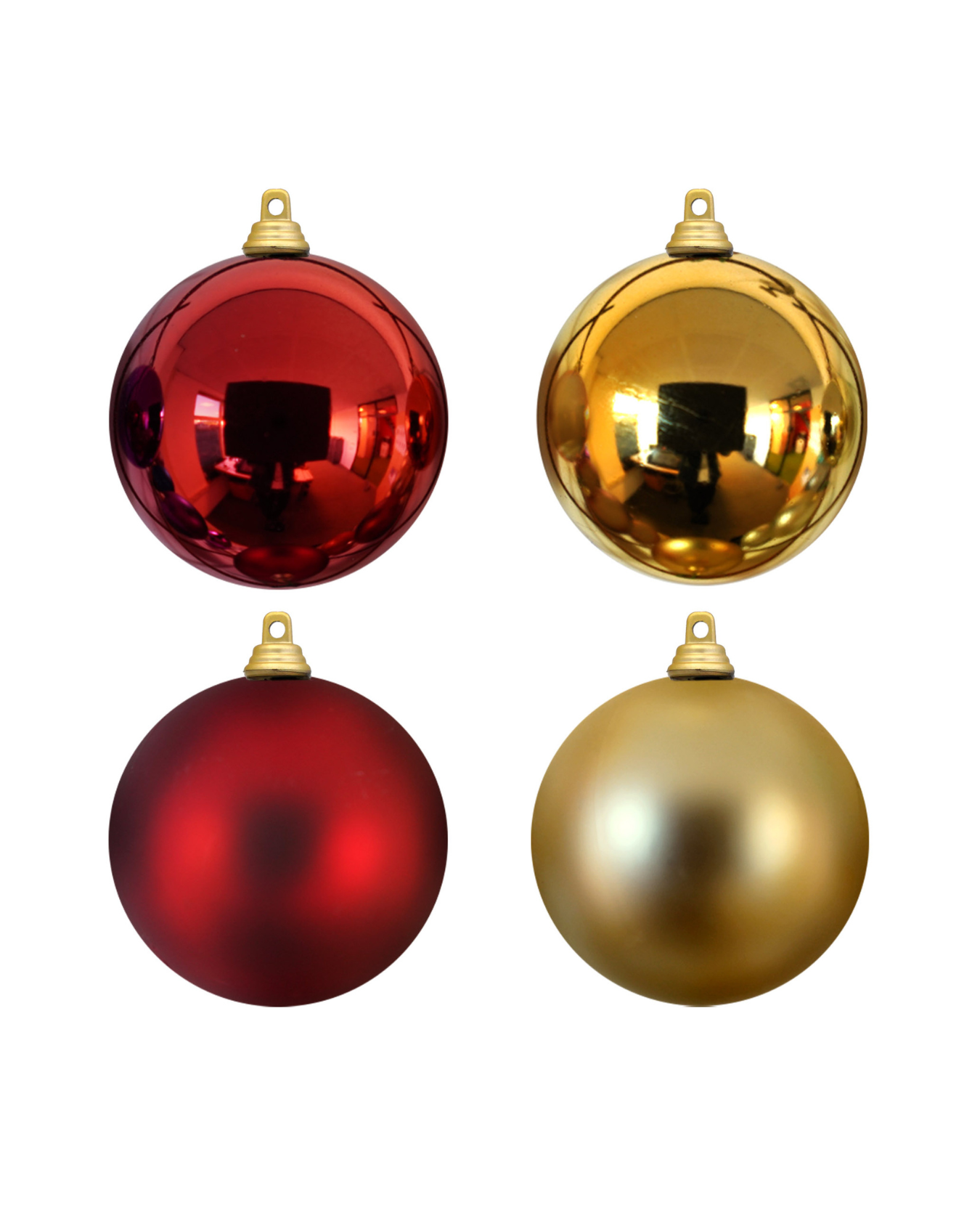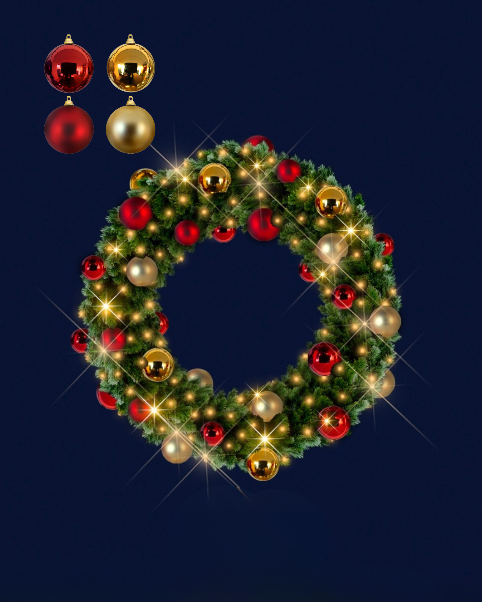 Færdigsammensat dekorationskit med brandhæmmende julekugler i klassisk rød og guld. Perfekt til at give dine grankranse et fyldigt og elegant udtryk – klar til montering.