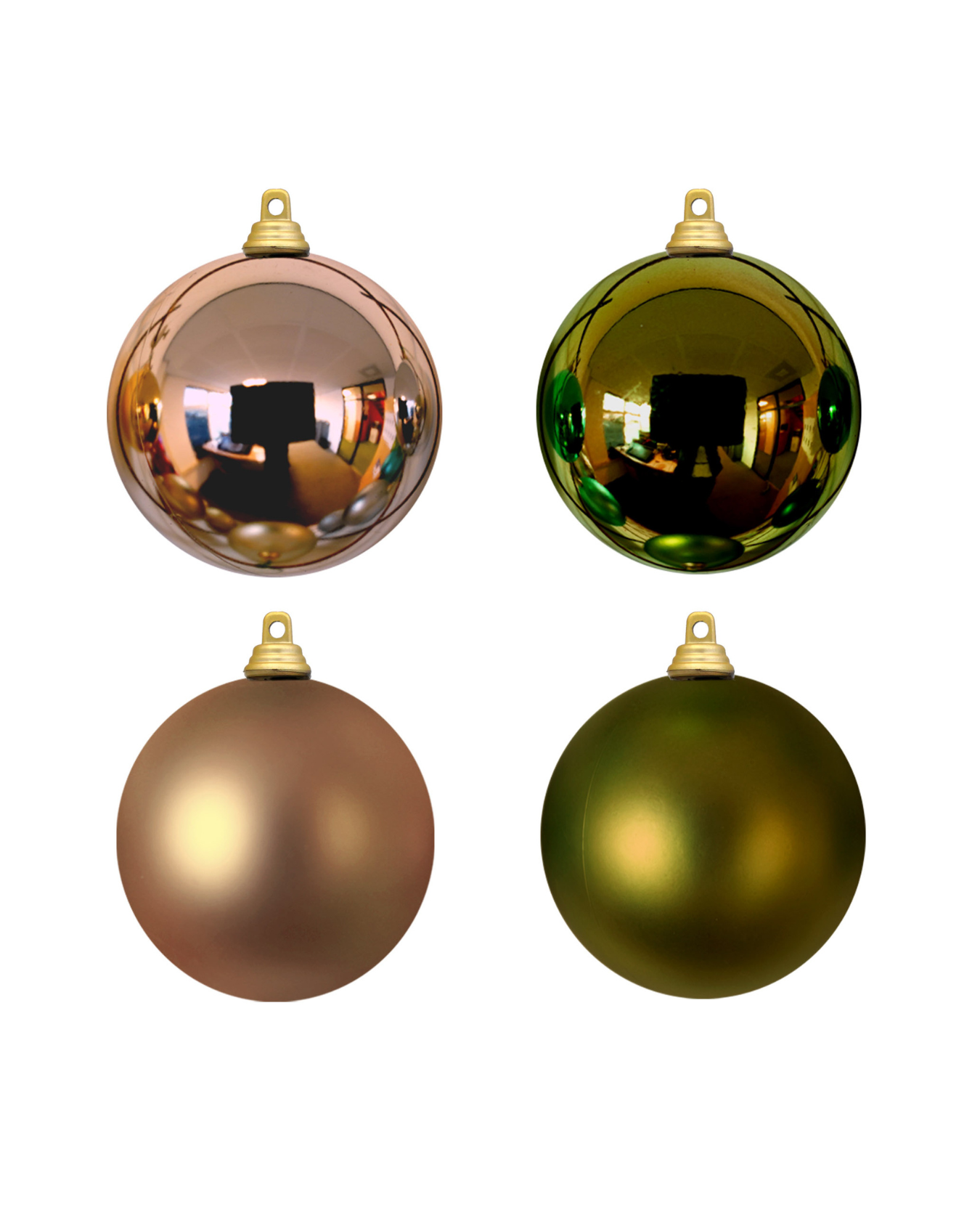 Elegant og færdigsammensat sæt julekugler i roséguld og mørk lime – perfekt til at dekorere julekranse med et eksklusivt og harmonisk udtryk.