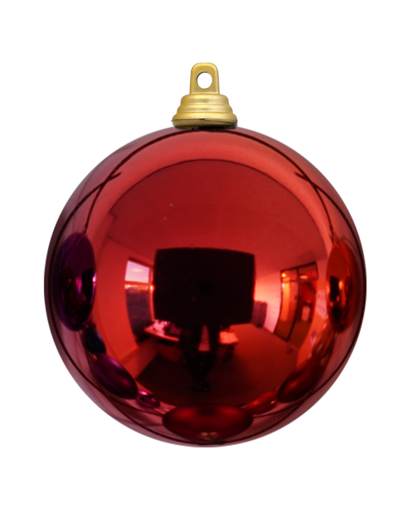 Julekugle fremstillet i holdbart og brandhæmmende plast med skinnende finish.