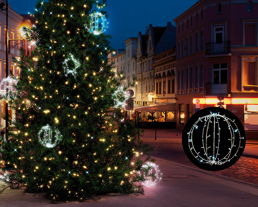 Motivet er lavet i robust metal og udstyret med 76 koldhvide LED-lys heraf 6 med funklende flash-effekter. Kuglen spreder et hyggeligt og indbydende lys, som tilføjer en magisk atmosfære til dine gæster.