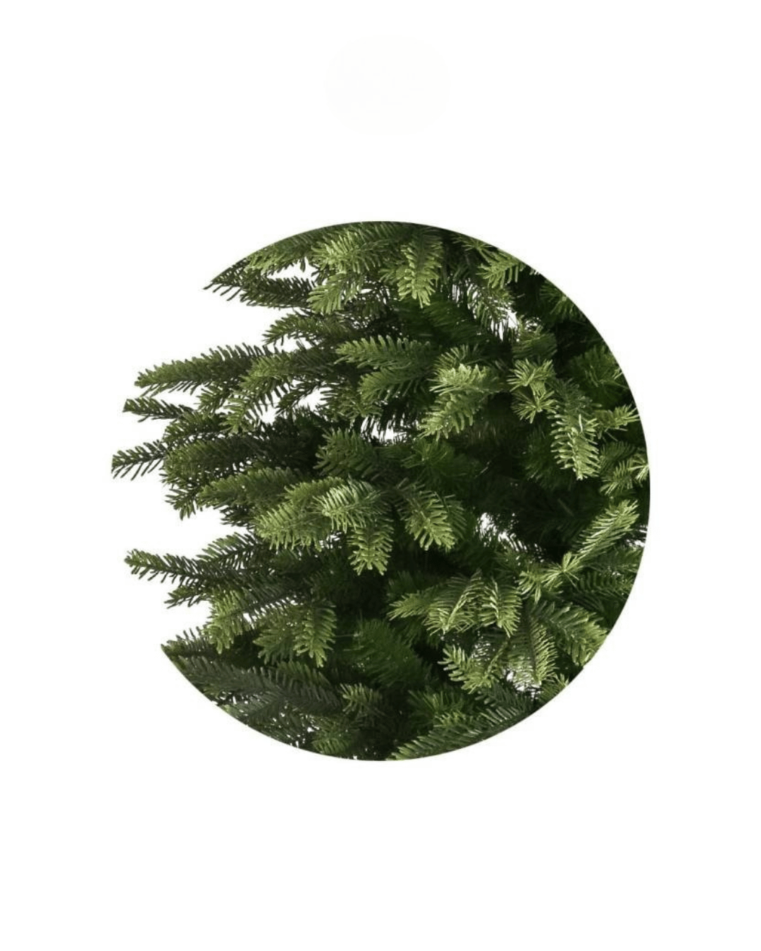 Træet er fremstillet af en kombination af formstøbte PE-grene og PVC, hvilket giver en flot balance mellem naturtro detaljer og tæthed. De yderste grene har en realistisk struktur og farve, mens de indre grene tilføjer volumen og dybde – perfekt til både minimalistisk og klassisk julepynt.