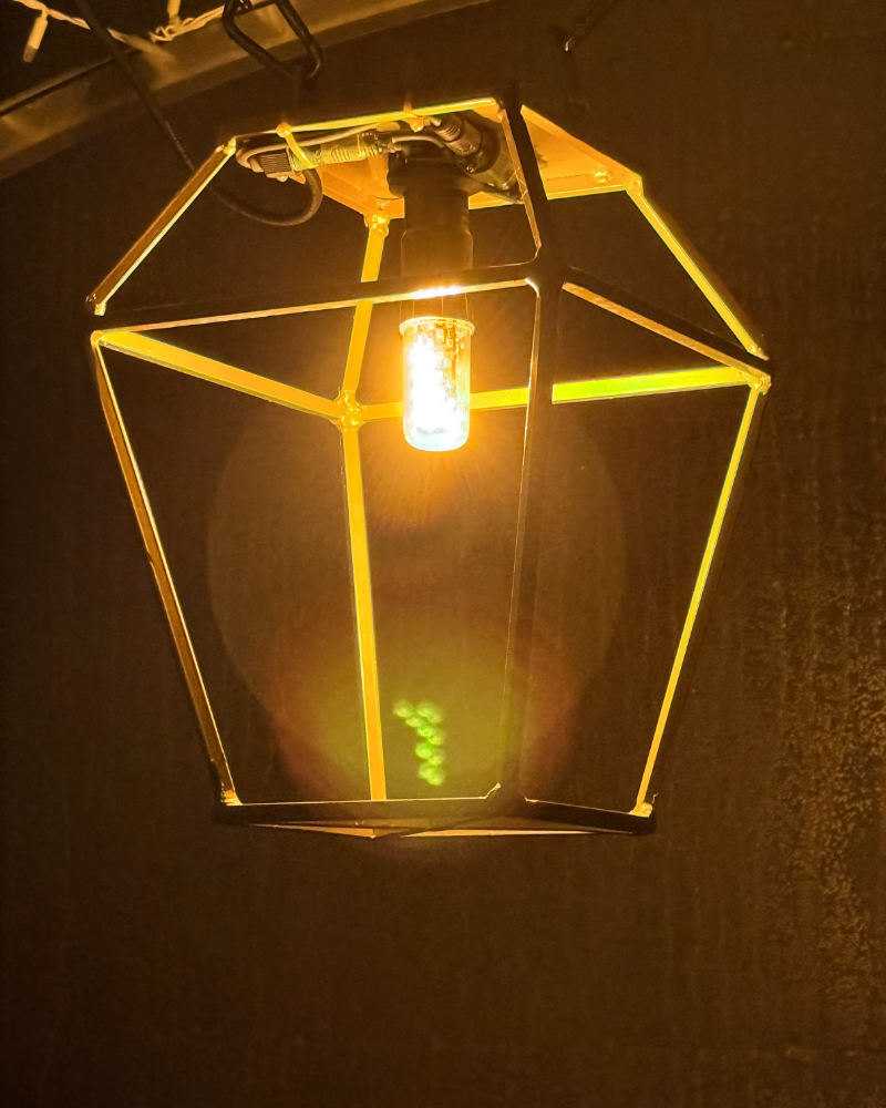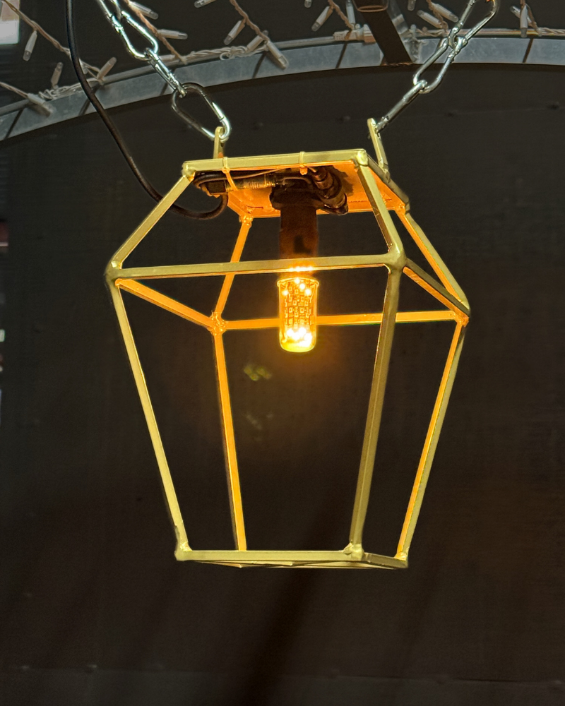 Motivet er udført i pulverlakeret, genanvendeligt guld-pulverlarkeret aluminium og udstyret med varm hvid LED-pære, der sikrer et behageligt og eksklusivt lysudtryk. Den kompakte størrelse gør lanternen alsidig og nem at integrere i både individuelle displays og større dekorationer.
