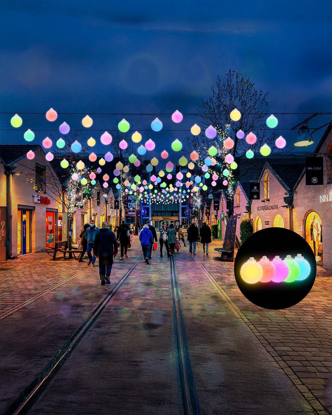 Skab en smuk og eksklusiv belysning med dette sæt af 3D LED-lyskugler, der skifter farve i RGB effekt. Ideel til både private og professionelle installationer i byrum, shoppingcentre og parker samt haver, hvor der kræves en smuk og elegant belysning.