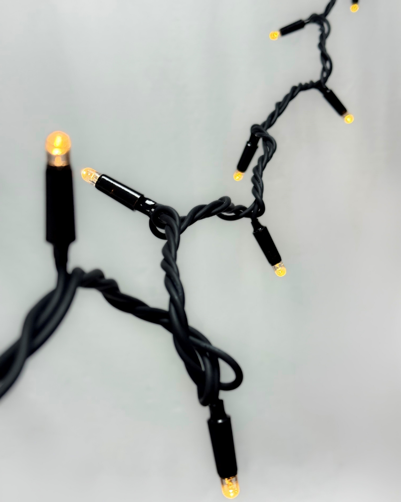 Den sorte PVC-ledning giver et diskret og professionelt udtryk, og den kraftige konstruktion sikrer lang levetid og høj modstandsdygtighed over for vejrpåvirkninger. Lyskæden er IP-klassificeret og udviklet til udendørs brug året rundt, og den energieffektive LED-teknologi sikrer lavt strømforbrug og stabil drift.