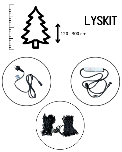 Skab en stemningsfuld og tryg jul med dette komplette lyskædekit, udviklet specifikt til juletræer i højder fra 120 til 300 cm. Sættet indeholder alt, hvad du skal bruge – LED-lyskæde, transformer og strømforsyning – så du hurtigt kan skabe et flot og ensartet lysudtryk.