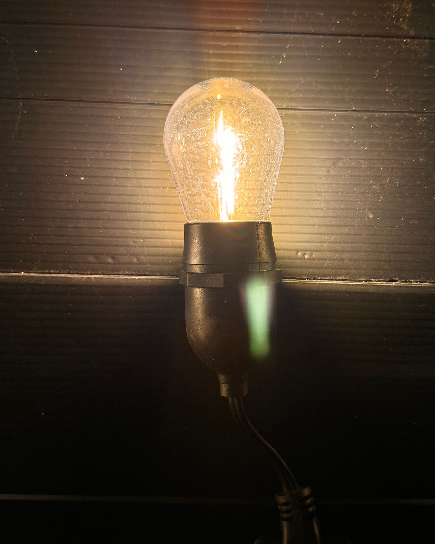 De varm-hvide LED-pærer giver et behageligt og indbydende lys, der passer til både moderne og klassiske udemiljøer – ideelt til både hverdagsstemning og festlige aftener.