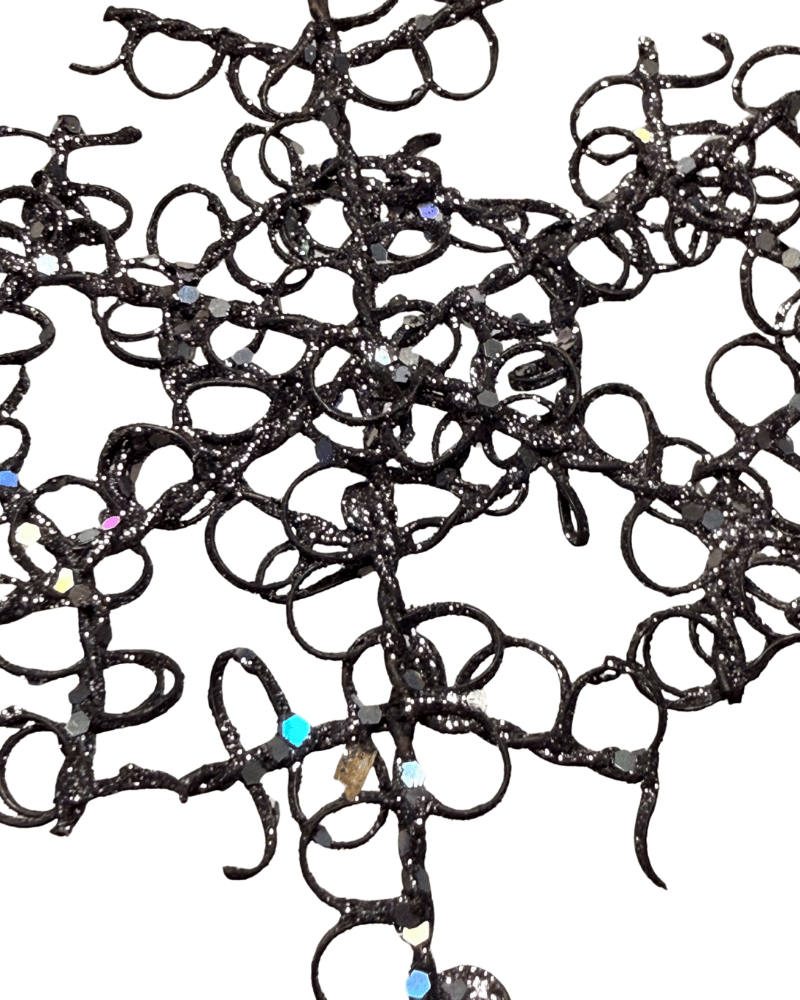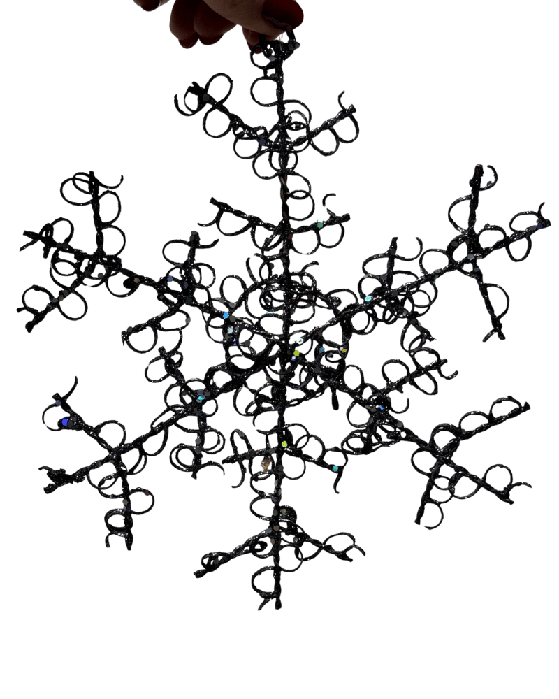 Dekorativt sort snefnug i metal med glitter. Vælg mellem 3 størrelser.