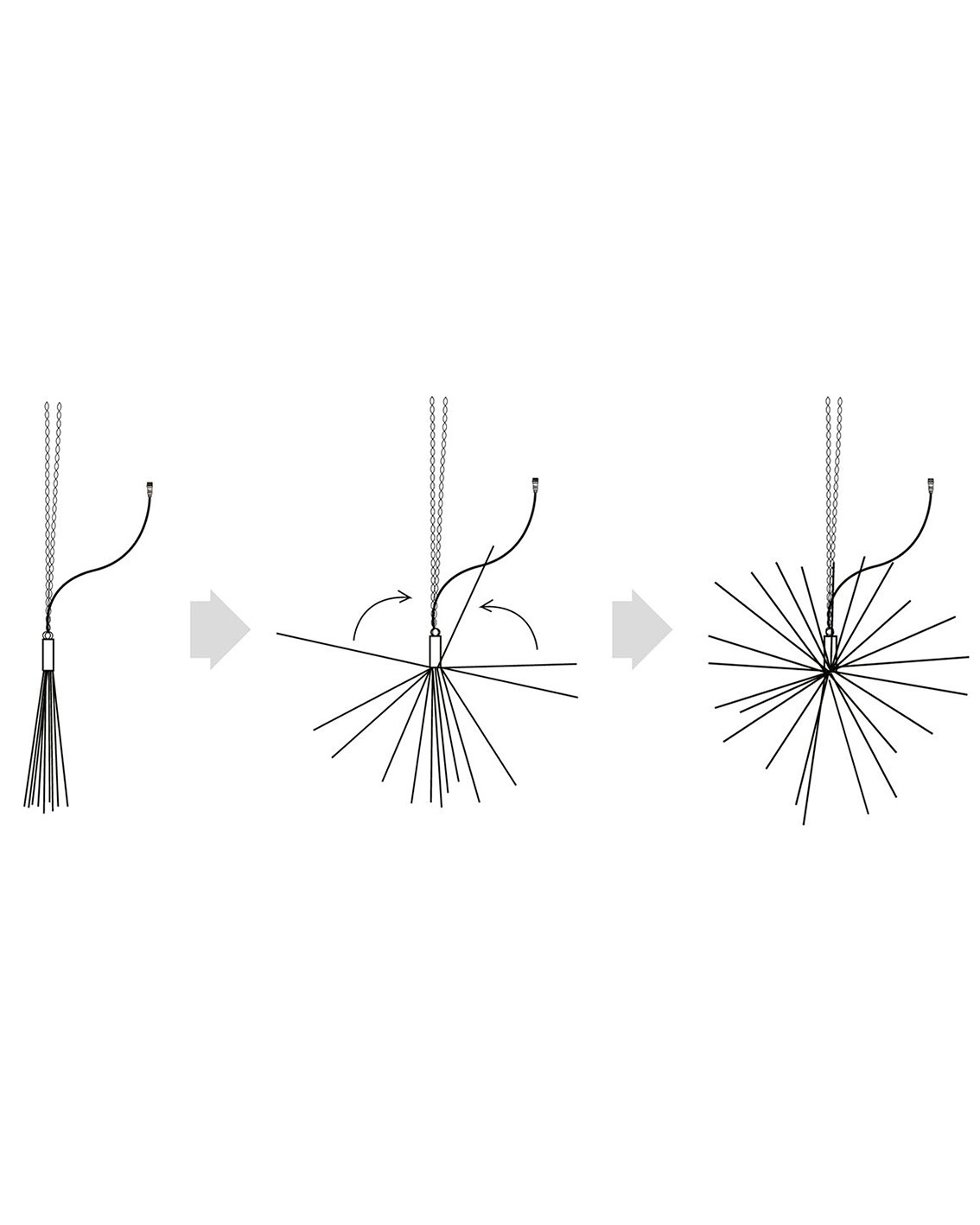 Kuglen er konstrueret i et foldbart design, der gør transport og opbevaring enkel. Den 5 meter lange ophængswire med connector sikrer fleksibel montering, og IP55-klassificeringen gør kuglen vejrbestandig og velegnet til både inde- og udendørs brug hele året.